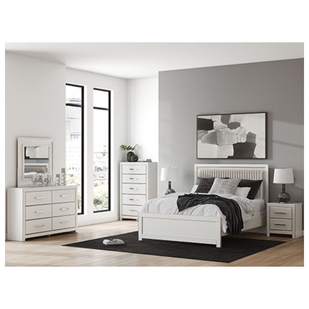 If glitz and glam are your jam, you’re gonna love this queen bedroom group. Gleaming glitter and dazzling chrome-tone touches are paired with tufted gray faux fur for a stunning pop of pizzazz. Loaded with chic flair and serious sparkle, it's a simply splendid way to wake up your inner sanctum’s style. Group includes queen bed, dresser, mirror and night stand.