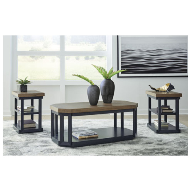 This accent table set combines casual contemporary design with modern appeal. With thick-bodied wood-tone tabletops and on-trend slate blue frames and shelves, these tables are a smart choice on so many levels. And casters on the coffee table's legs make it easily mobile for quick room transformations. This three-in-one pack is more than just nice furniture anchoring your sofa.