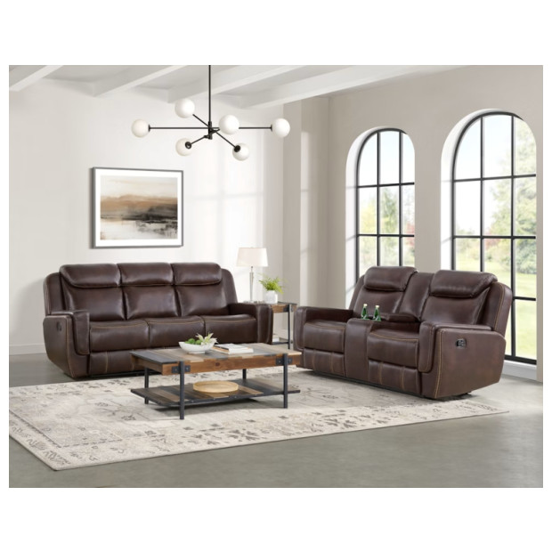 Introducing the Panther Reclining Set, a premium addition to any living space that combines timeless luxury with cutting-edge comfort technology. This two-piece set features a full-sized reclining sofa and a matching reclining loveseat, each wrapped in a rich, chocolate brown faux leather that exudes sophistication and class. The Panther Set is designed for ultimate relaxation. Each piece is equipped with an easy-to-use reclining mechanism that allows you to adjust your seating position to your exact preference. The plush padding and ergonomic design provide superior support and comfort, perfect for unwinding after a long day.